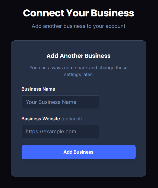 At the bottom of this page, click + New Business, then follow the prompts to sign in and connect any Facebook pages that you admin.