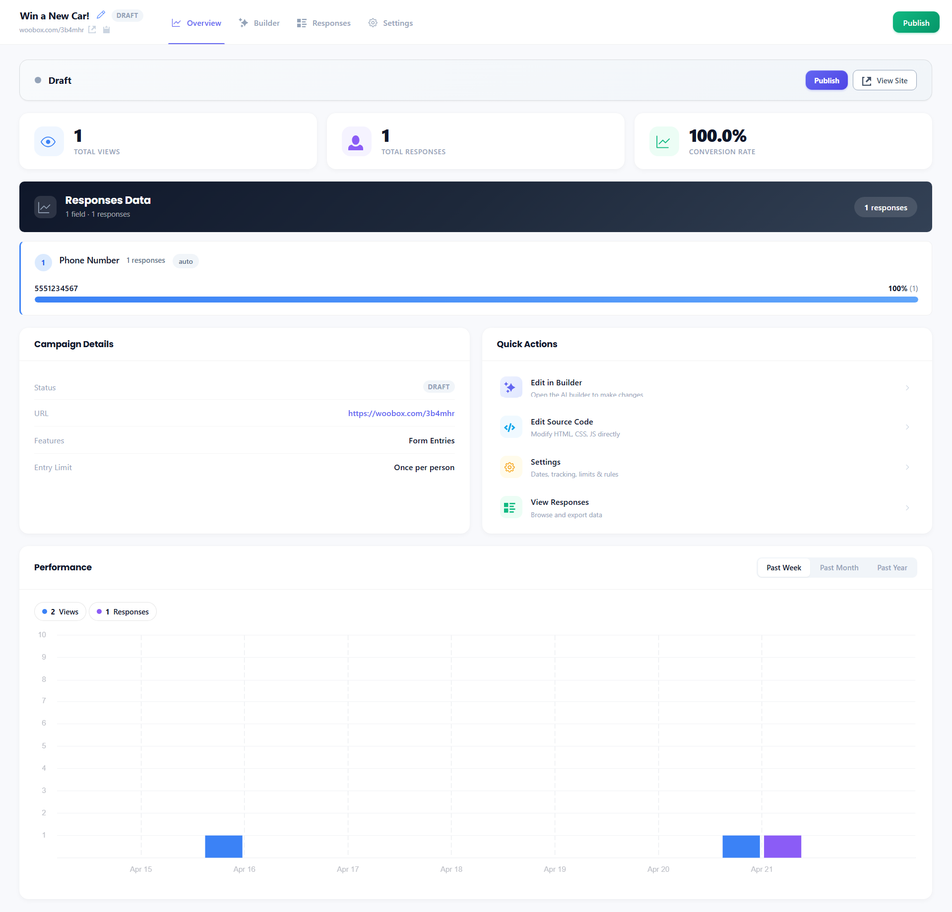 Welcome to the Woobox AI Site Builder! This powerful new tool can help you create and design the ultimate Survey, Form, Giveaway, Photo Contest, or almost any campaign you can imagine – in just a few minutes.